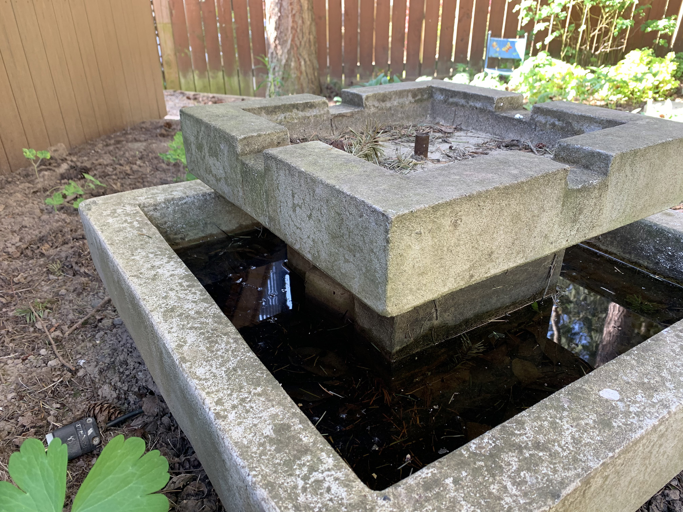 Ask for individual actions. Communities can reduce insecticide use during the mosquito season by working together to eliminate standing water in backyards—such as is collected in this unused fountain. (Photo: Matthew Shepherd.)