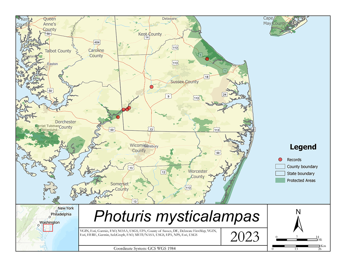 This nocturnal, flashing species is a habitat specialist, occurring within high-quality forested floodplains in the Nanticoke and Broadkill-Smyrna watersheds. Assessed as Endangered by the IUCN Red List of Threatened Species (a non-regulatory designation distinct from the federal ESA), it is one of only two firefly species endemic to the Delmarva Peninsula — the other being the Bethany Beach firefly, Photuris bethaniensis, which is currently under review for ESA listing. The forested floodplain habitat that the mysterious lantern firefly uses was once abundant across the peninsula, but now occurs in remnant patches that are further threatened by sea level rise and increased storm surges from climate change.