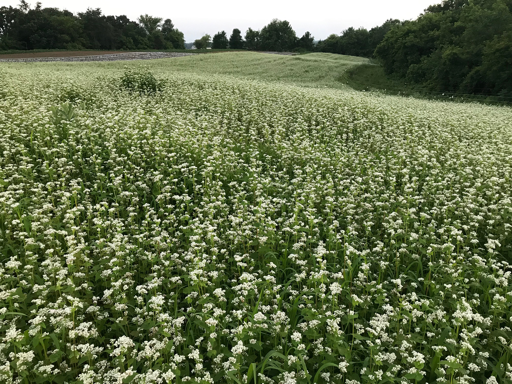 Cover cropping with plants such as annual buckwheat (Fagopyrum) provide an effective alternative to herbicides for weed control on farmland. (Photo: Xerces Society / Karin Jokela.)