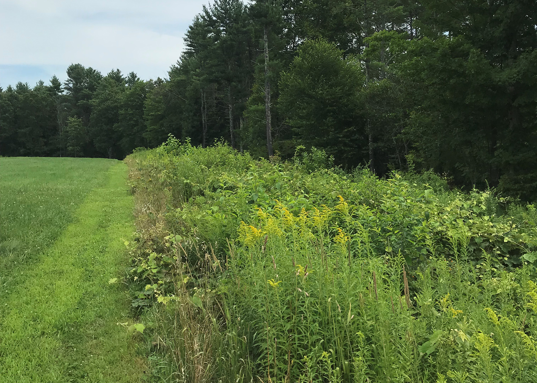 Vegetation on field borders can provide valuable wildlife habitat and support beneficial insects that pollinate crops as well as control pests. (Photo: Xerces Society / Mace Vaughan.)