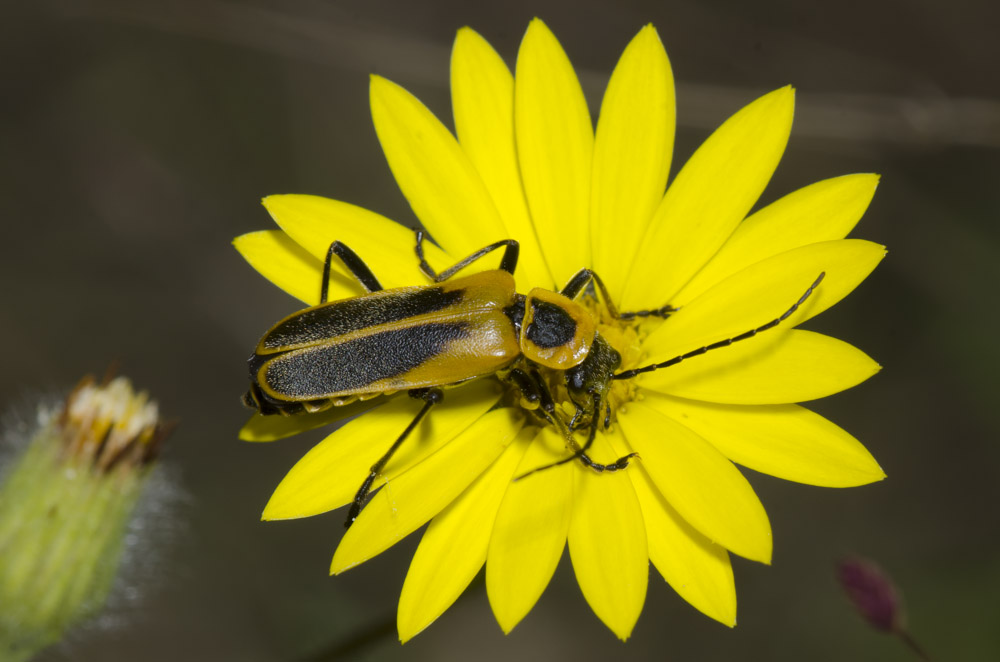The Pennsylvania leatherback (Chauliognathus pensylvanicus), also known as the goldenrod soldier beetle, is a commonly seen flower visitor east of the Rockies. This specimen is in Oklahoma, foraging on soft goldenaster (Bradburia pilosa).