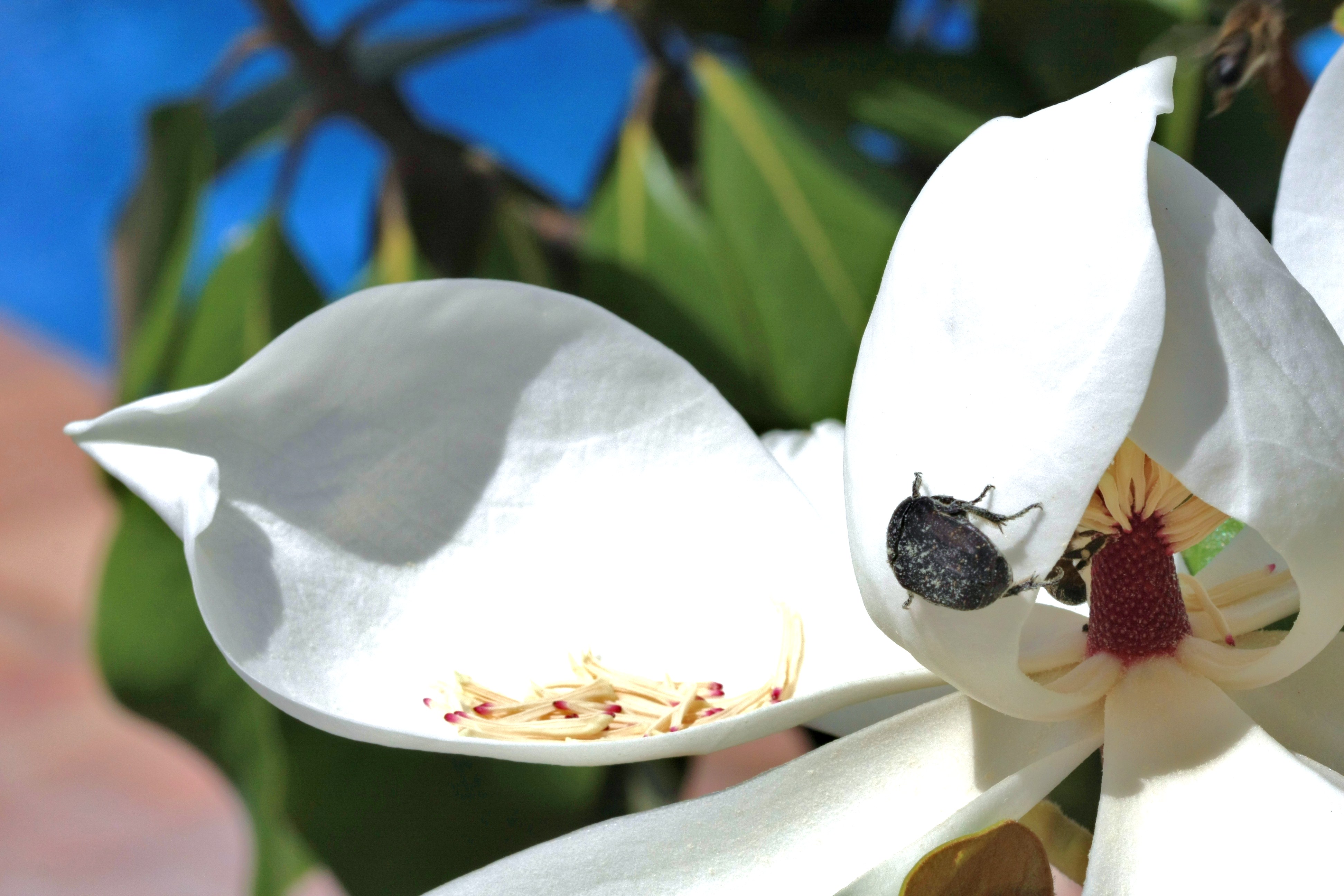 Beetles have a long history on this planet. Fossil records show they were abundant when dinosaurs roamed the Earth during the Mesozoic Era, roughly 200 million years ago. It is possible that these early beetles played a role in the pollination of gymnosperms like cycads. When flowering plants (angiosperms) came onto the scene about 100 million years ago, bees and butterflies had not yet made an appearance. In their absence, beetles helped to shape early plant-insect pollination relationships. Because of this long history, many of the plants that are beetle pollinated today have a similarly long lineage. In fact, some of the best known beetle-pollinated plants are magnolias, themselves part of an ancient line.