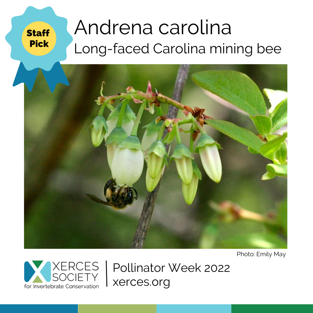 “This bee's long face helps it reach into the deep flowers of blueberries, and its flight season is tightly linked with its spring-blooming host plants. Next time you eat a blueberry, remember to thank Andrena carolina and other pollinators for your sweet treat!”