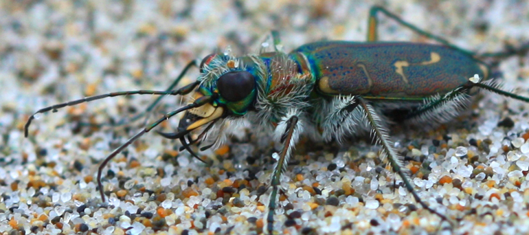 The Xerces Society works to protect tiger beetles and their habitat by advocating for protection under federal and state laws as well as working directly with land management agencies to develop conservation plans and implement habitat improvements. Our work led to the protection of the Salt Creek tiger beetle and it remaining habitat. We have also worked with the BLM to document populations of the Siuslaw hairy-necked tiger beetle, one of the rarest beetles in the world living on only a few stretches of beach on the Oregon and Washington coast. Most habitat along the coast has been lost to off-road vehicles. One area where they still thrive is protected not for the beetles but for the threatened snowy plover, which only nests in areas along the coast. Habitat restoration and protection for the snowy plover seems to be helping this rare tiger beetle survive.