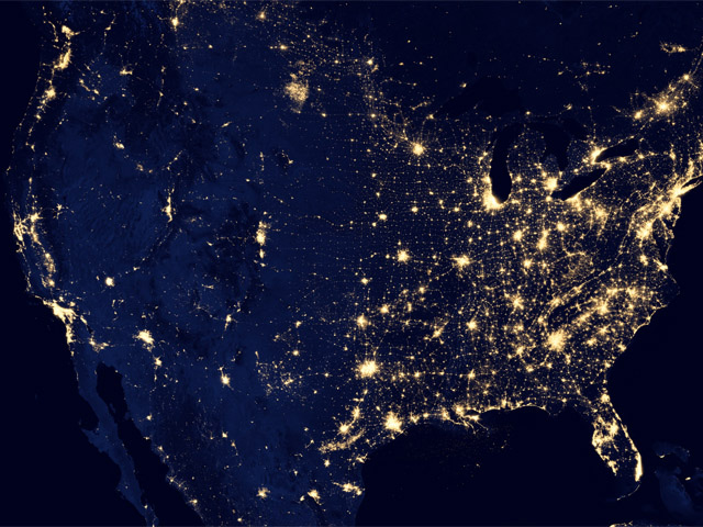 (NASA Earth Observatory image by Robert Simmon; Suomi NPP VIIRS data courtesy of Chris Elvidge, NOAA National Geophysical Data Center)