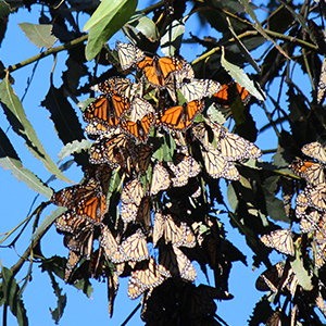 The seasonal movement of monarchs connects all landscapes. These butterflies will seek out habitat along roadsides, the edges of farm fields, prairies, meadows, and city gardens. The butterflies that leave the overwintering sites soon breed and die, with successive generations moving north until the reach southern Canada, the limit of milkweed growth. Along the way, the adults feed on nectar-rich flowers and lay eggs on milkweed.