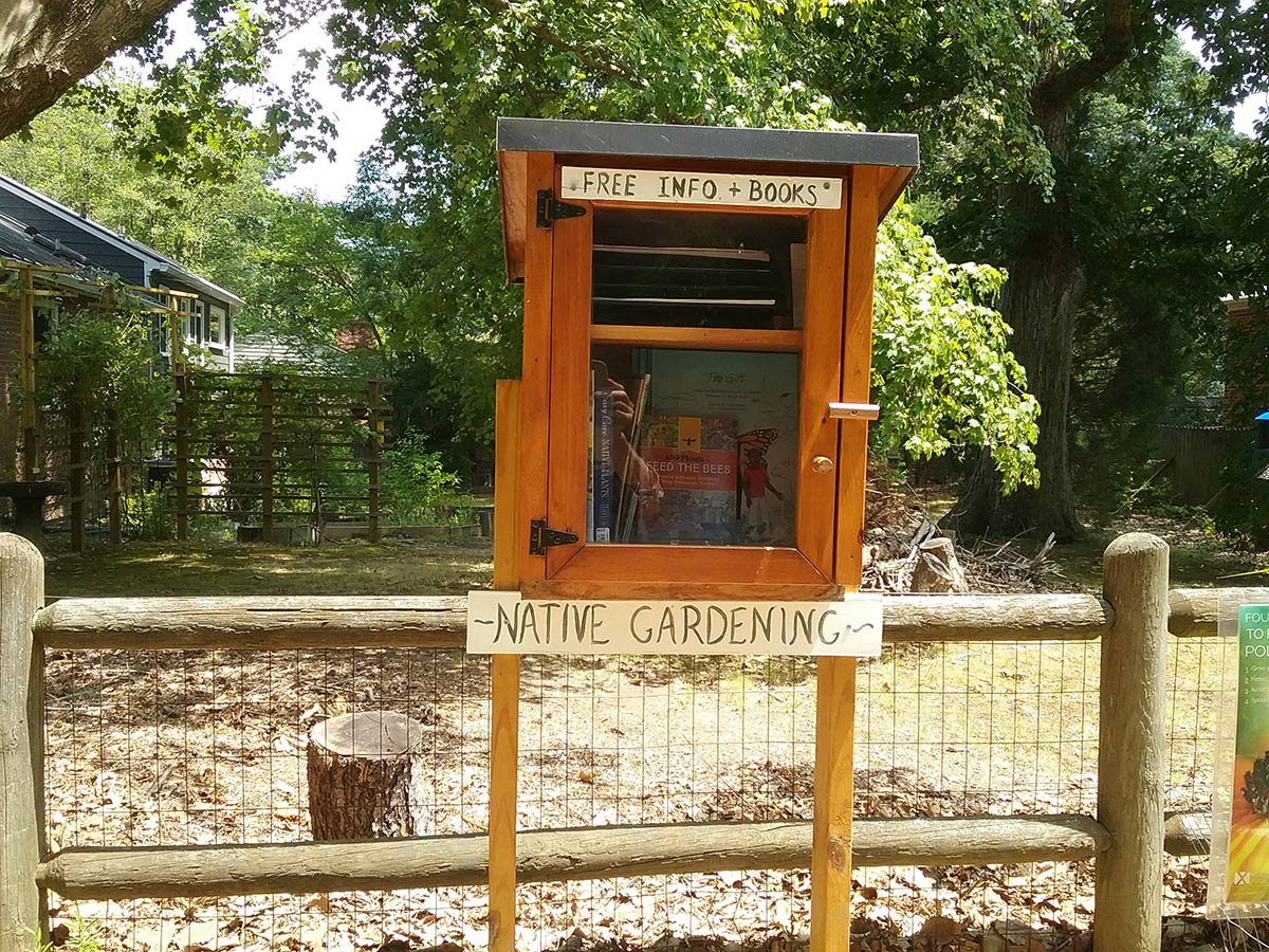 Passionate about educating and supporting their community they give scheduled tours of their garden, distribute native seedlings, and built a little library house that features free books and brochures on native gardening.
