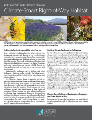 Improving pollinator habitat along roadsides and rights-of-way has many benefits, even beyond providing habitat for these important insects—including carbon sequestration and soil stabilization. Although this fact sheet is centered on California, many lessons are more broadly applicable, and can provide a useful jumping-off point for climate-smart habitat planning for other regions.