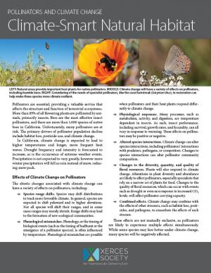 Given the many ways that climate change is likely to impact pollinators and plant-pollinator interactions, we propose multiple strategies to increase climate resilience for pollinators in natural areas. Although this fact sheet is centered on California, many lessons are more broadly applicable, and can provide a useful jumping-off point for climate-smart habitat planning for other regions.
