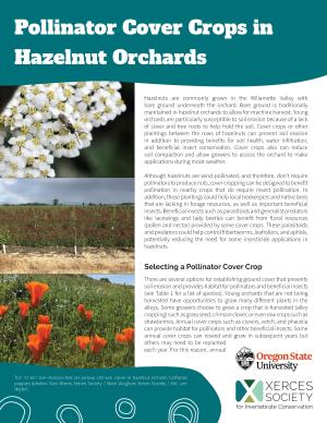 Hazelnuts are commonly grown in the Willamette Valley with bare ground underneath the orchard. Bare ground is traditionally maintained in hazelnut orchards to allow for machine harvest. Young orchards are particularly susceptible to soil erosion because of a lack of cover and tree roots to help hold the soil. Cover crops or other plantings between the rows of hazelnuts can prevent soil erosion in addition to providing benefits for soil health, water infiltration, and beneficial insect conservation. Cover crops also can reduce soil compaction and allow growers to access the orchard to make applications during moist weather.