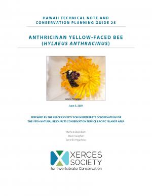 Yellow-faced bees (bees in the genus Hylaeus) are important pollinators of native Hawaiian plants. Hylaeus anthracinus, known simply as the anthricinan bee, is one of 63 described Hylaeus bee species endemic to the Hawaiian Islands—the only bees native to the islands. H. anthracinus is a rare yellow-faced bee, which is listed as an endangered species by the U.S. Fish and Wildlife Service. Conservation efforts for H. anthracinus may help address known threats to the species, including habitat loss or degradation, nonnative predators, invasive plants, fire, and habitat destruction from ungulates in lowland and higher elevation habitats. The purpose of this technical note is to provide guidance to NRCS and partner agency staff when protecting, designing, and installing habitat for H. anthracinus. This technical note focuses on the biology and habitat needs of this species and offers specific conservation recommendations as well as a survey protocol to monitor populations.