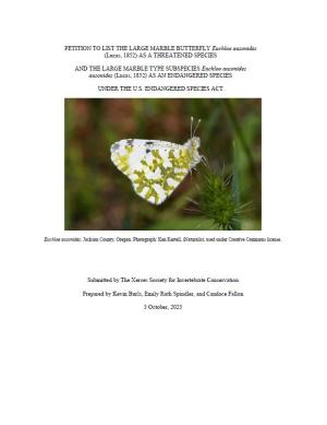 The Xerces Society submitted this petition for listing the large marble butterfly (Euchloe ausonides) under the Endangered Species Act (ESA) in 2023.
