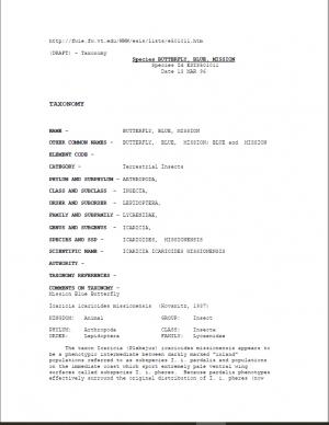 U.S. Fish & Wildlife Service Recovery Plan for the Mission blue (Icaricia icarioides missionensis)--Draft Recovery Plan