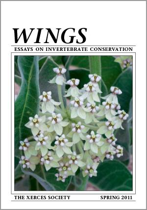 The Spring 2011 issue of Wings Magazine includes articles on the rediscovery of an endangered land crab species, the importance of milkweed species in the landscape, and migratory dragonflies.
