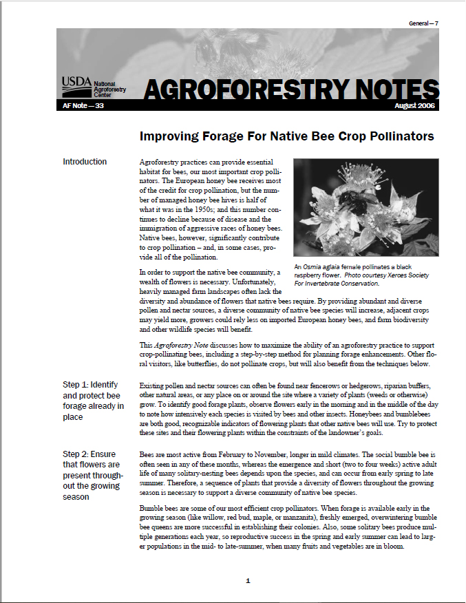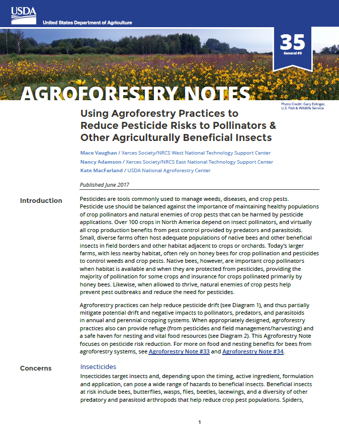 Using Agroforestry Practices to Reduce Pesticide Risks to Pollinators & Other Agriculturally Beneficial Insects