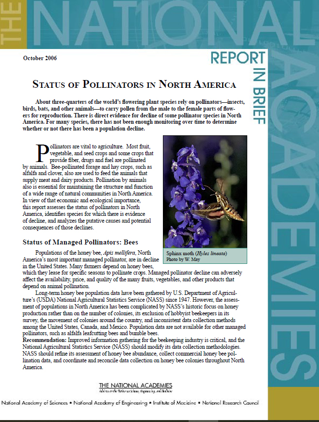 Report in Brief: Status of Pollinators in North America (October 2006)
