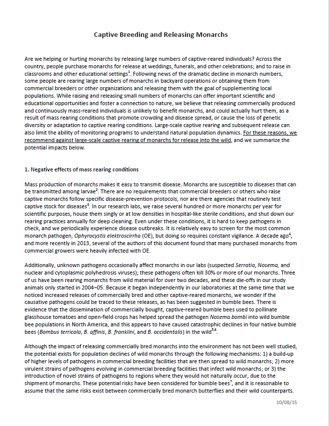 Monarch Butterflies: Xerces Society Policy on Butterfly Releases