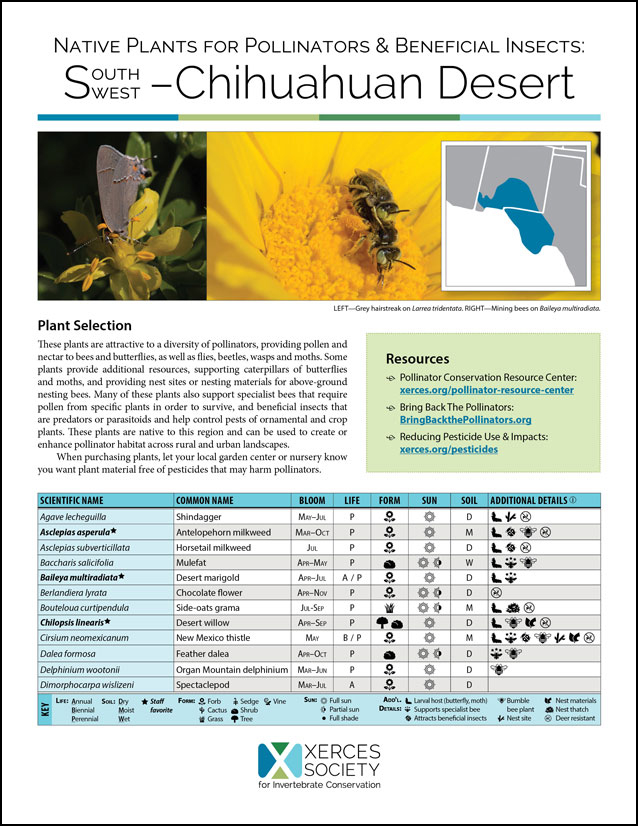 Native Plants for Pollinators and Beneficial Insects: Southwest Chihuahuan Desert Region