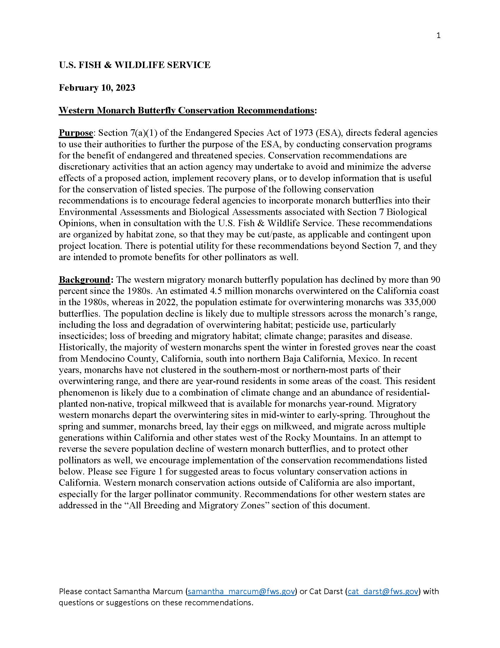 The Monarch Project's Conservation and Management Guidelines for Preserving the Monarch Butterfly Migration and Monarch Overwintering Habitat in California