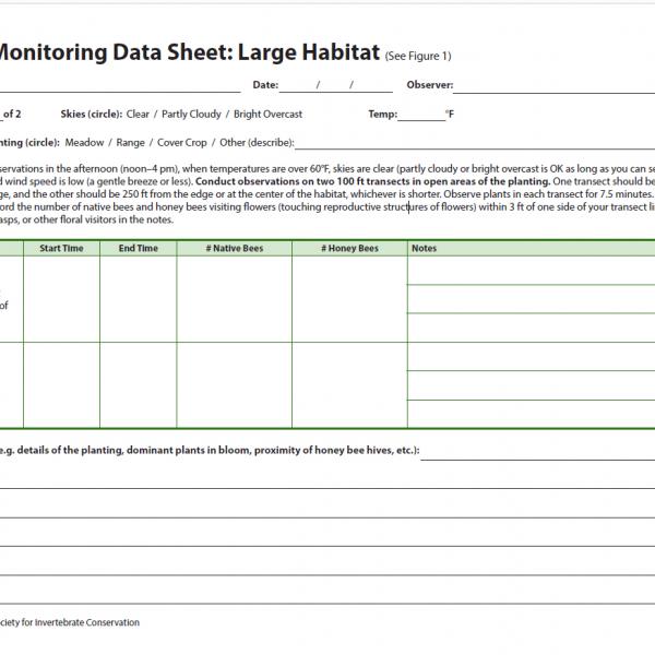 Developed for conservationists, farmers, land managers, restoration professionals, and community scientists, our Bee Monitoring Protocol and Community Science Guides are useful for documenting how native bee communities change through time in pollinator habitats. These publications include an introduction to bee identification, a detailed monitoring protocol, and data sheets for different habitat types.