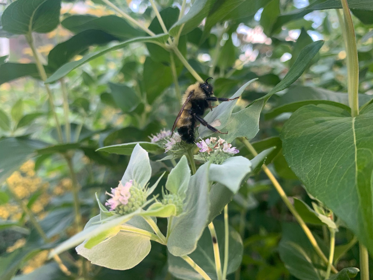 One day while out watching my garden, I saw a bumble bee I didn’t recognize on my mountain mint. Like most of the other bumble bees I've spotted in the yard, it had black and yellow hairs, but the underside of its abdomen was almost concave, instead of round.