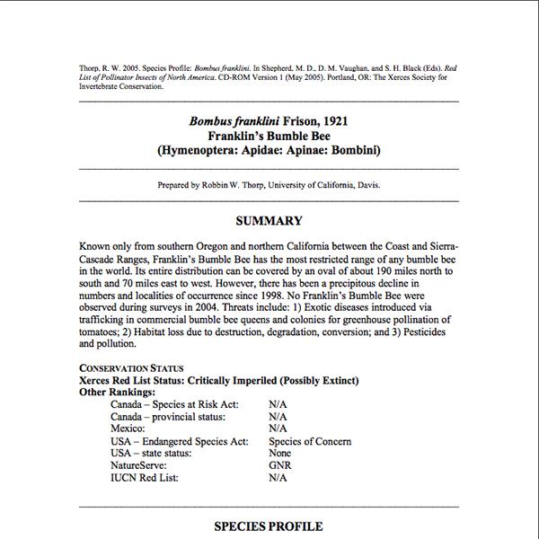 View detailed profiles of bumble bee species compiled by the Xerces Society and partners.