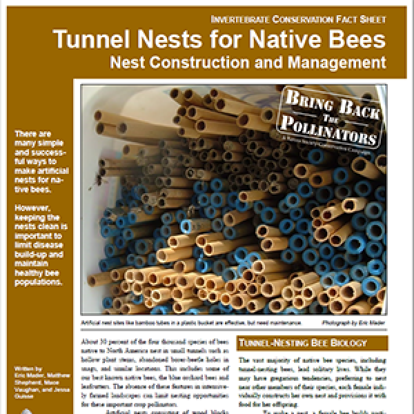 Nesting Notes: Where possible, allow dead trees or snags to remain in the landscape or incorporate this material into habitat areas. Commercial and backyard nesting blocks and “insect hotels” are available or can be easily made, but careful maintenance is required to limit the spread of disease and harmful mites in these materials. Plants with pithy stems, such as raspberries, provide excellent habitat for small carpenter and other cavity nesting bees.