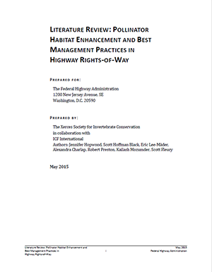 This technical literature review, produced for the Federal Highway Administration with ICF International, includes a thorough treatment on the status of pollinators, causes of decline, potential mitigation efforts, habitat restoration and management for pollinators, and applications to roadsides.