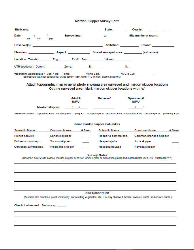 Survey form--Taylor's checkerspot (Euphydryas editha taylori)